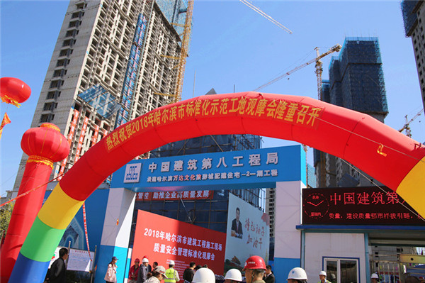 為進(jìn)一步推動(dòng)集團(tuán)工程質(zhì)量安全管理標(biāo)準(zhǔn)化提升,加強(qiáng)精細(xì)化管理,促進(jìn)創(chuàng)建精品工程,近日,集團(tuán)工程管理部、安全辦聯(lián)合組織各單位總工、工程科、安全科人員,在哈項(xiàng)目經(jīng)理、技術(shù)、質(zhì)量等負(fù)責(zé)人40余人,參加了哈爾濱市建筑業(yè)協(xié)會(huì)工程質(zhì)量監(jiān)督與檢測(cè)分會(huì)組織,中建八局承辦的哈爾濱萬達(dá)文化旅游城配建住宅-2一期項(xiàng)目現(xiàn)場(chǎng)觀摩會(huì),參觀了中建八局工程質(zhì)量常見問題的專項(xiàng)治理、施工現(xiàn)場(chǎng)質(zhì)量安全標(biāo)準(zhǔn)化樣板工地、綠色施工管理理念、質(zhì)量管理體系標(biāo)準(zhǔn)化展示、質(zhì)量管理行為標(biāo)準(zhǔn)化展示、質(zhì)量過程管控標(biāo)準(zhǔn)化展示、施工工藝標(biāo)準(zhǔn)化展示、細(xì)部節(jié)點(diǎn)標(biāo)準(zhǔn)化展示、BIM技術(shù)展示、新技術(shù)應(yīng)用展示等標(biāo)準(zhǔn)做法。