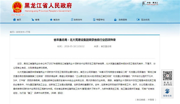 近日,筆者在省級(jí)公共媒體平臺(tái)了解到,去年至今,《北大荒建設(shè)集團(tuán)抓清欠喜迎十九大》《北大荒建設(shè)集團(tuán)“亮劍”力促問題整改》《北大荒建設(shè)集團(tuán)榮獲省級(jí)行業(yè)四項(xiàng)殊榮》三篇對(duì)上稿件被省人民政府網(wǎng)站——中國●黑龍江原文收錄;《北大荒建設(shè)集團(tuán)為企業(yè)高效管理注入“強(qiáng)心劑”》《北大荒建設(shè)集團(tuán)以黨建帶群團(tuán)建設(shè)》兩篇新聞報(bào)道被黑龍江經(jīng)濟(jì)報(bào)全文首發(fā)。這是繼集團(tuán)第五分公司華康30萬糧食倉儲(chǔ)建設(shè)項(xiàng)目,被省廣播電視臺(tái)《新聞聯(lián)播》節(jié)目《火熱龍江譜華章(十三)項(xiàng)目建設(shè)掀熱潮》專欄報(bào)道后,再一次引起省級(jí)重要媒體的高度關(guān)注,實(shí)現(xiàn)了集團(tuán)在省級(jí)主流媒體刊發(fā)稿件數(shù)量新提升。
