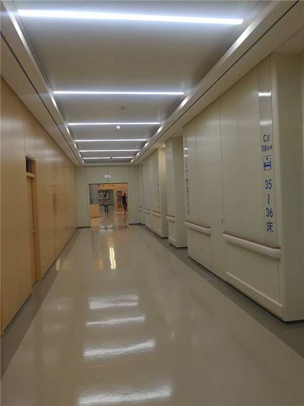 突出設(shè)計(jì)特色,融入時(shí)尚元素是該工程能夠成為示范項(xiàng)目的獨(dú)特之處。龍墾公司作為施工總承包,從設(shè)計(jì)理念、材料選擇及施工工藝中既運(yùn)用了新技術(shù)又體現(xiàn)了人性化特點(diǎn),選材及裝飾圍繞簡(jiǎn)潔、自然、科技、健康四大元素,各種材料定型模塊化、拼裝化,既能減少材料損耗又能大大縮短工期。該工程天棚選用1.2mm厚穿孔鋁板配合集成設(shè)備帶,所有下引設(shè)備除消防硬性要求外露外,全部放置在集成設(shè)備帶中,棚面整體干凈、整潔,吸收噪音能力強(qiáng)。公共區(qū)域墻板選用0.8mm厚鋼板復(fù)合墻面,成品模塊化安裝,配合檢修門及管道井暗門。整體墻面既隱藏了明裝電箱及管道井門等又能使墻面達(dá)到整潔、干凈的效果。地面材質(zhì)病區(qū)走廊選用進(jìn)口橡膠地板,降噪及抗污能力強(qiáng),病房選用優(yōu)質(zhì)瓷磚,即實(shí)用又美觀。光源分區(qū)選擇,按不同的需求及條件要求,病房選用4000K光源,走廊選用5700K光源,大廳選用10000K光源,既能滿足區(qū)域光照要求,又最大限度節(jié)約能源。病房區(qū)域以環(huán)保、抗污為前提選材裝備,設(shè)有中央空調(diào)、24小時(shí)熱水淋浴、無(wú)障礙坐便、智能雙控電氣開(kāi)關(guān)控制,配備電視、冰箱、微波爐、電磁爐、抽煙煙機(jī)、抽屜式折疊陪護(hù)床等,給病人家的感覺(jué),處處體現(xiàn)了施工到使用人性化的初衷。
