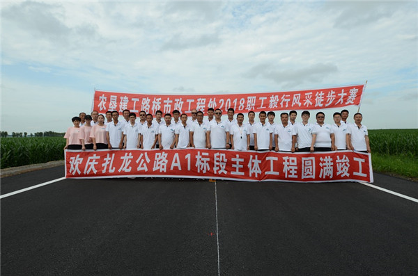 為慶祝“扎龍A1標段”主體工程的圓滿竣工,近日,路橋公司市政工程處以“同心共筑美好夢想,雙腳踐行美麗人生”為主題的徒步大賽在扎龍A1標段嶄新的路面上舉行,項目部全體職工30余人參加了此次活動。
