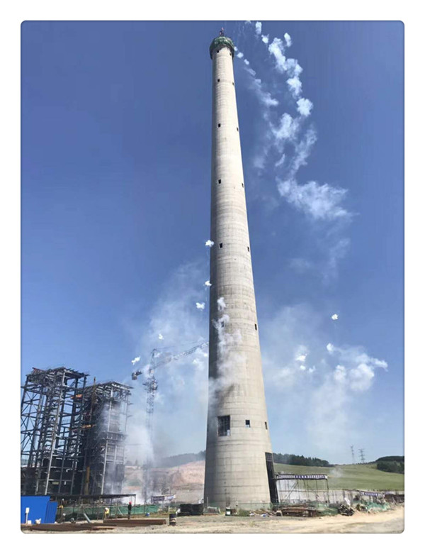 海林市海浪熱電廠項(xiàng)目煙囪工程喜封金頂
