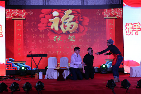 “攜手奮斗 共創(chuàng)輝煌”為主題的聯(lián)歡會(huì),節(jié)目形式多樣,小品、舞蹈、吉他彈唱、樂(lè)器演奏等節(jié)目逐一亮相,充分表達(dá)了全體員工對(duì)改革開(kāi)放四十周年、擁護(hù)墾區(qū)改革和企業(yè)轉(zhuǎn)型發(fā)展的熱情贊美。演員們生動(dòng)鮮活的表演,有板有眼的招式,讓臺(tái)下觀眾不時(shí)叫好,報(bào)以熱烈的掌聲。其中,舞蹈《張燈結(jié)彩》拉開(kāi)聯(lián)歡會(huì)序幕,歌曲《春天的故事》唱出了唱出了“一代偉人”的遠(yuǎn)見(jiàn)卓識(shí),唱出了全國(guó)人民對(duì)改革開(kāi)放的擁護(hù)。小品《工地大聯(lián)歡》表達(dá)了一線(xiàn)職工熱愛(ài)生活、熱愛(ài)企業(yè)的精氣神,《非洲鼓》極具民族與地域特色,在展現(xiàn)樂(lè)觀生活態(tài)度同時(shí),表達(dá)出路橋公司開(kāi)辟非洲新戰(zhàn)場(chǎng)的壯志豪情。歌曲《越走路越寬》《夜空中最亮的星》,三句半《日常工作侃一侃》以通俗易懂、精煉的語(yǔ)言展現(xiàn)了施工企業(yè)干部職工重要作用。根據(jù)生活真實(shí)事件改編的音樂(lè)劇《探望》,表達(dá)了廣大干部職工對(duì)北大荒無(wú)限的熱愛(ài)。整臺(tái)晚會(huì),五輪觀眾互動(dòng)環(huán)節(jié),吸引人眼球,集團(tuán)領(lǐng)導(dǎo)與干部職工互動(dòng),送去小禮物,“小紅豬”“小佩奇”成為聯(lián)歡會(huì)現(xiàn)場(chǎng)吉祥物。25個(gè)節(jié)目編排新穎,多種藝術(shù)表演形式糅合,讓人眼前一亮,充分展示了集團(tuán)、展示了國(guó)企員工奮發(fā)向上、努力拼搏的精神。集團(tuán)總部全體工作人員表演詩(shī)朗誦《刻在北大荒的土地上》,大合唱《團(tuán)結(jié)就是力量》,展現(xiàn)了建設(shè)人打造優(yōu)秀企業(yè)文化,服務(wù)轉(zhuǎn)型發(fā)展的支持與關(guān)注,在推行“唱兩首歌,背一首詩(shī)”(國(guó)歌、北大荒人的歌;刻在北大荒的土地上)活動(dòng)中率先垂范,用高尚的情操凝聚人心,聚合力量。