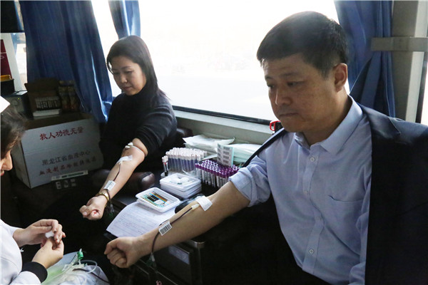 路橋公司總經(jīng)理于鳳河、黨委書(shū)記高建國(guó)、副總經(jīng)理李玉春等率先走上獻(xiàn)血車,帶頭獻(xiàn)血。