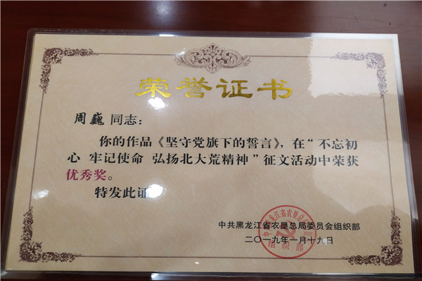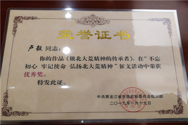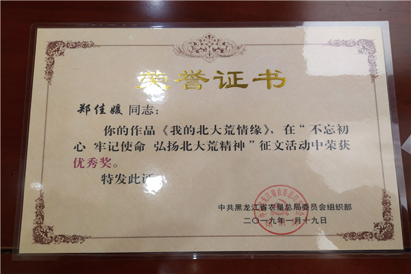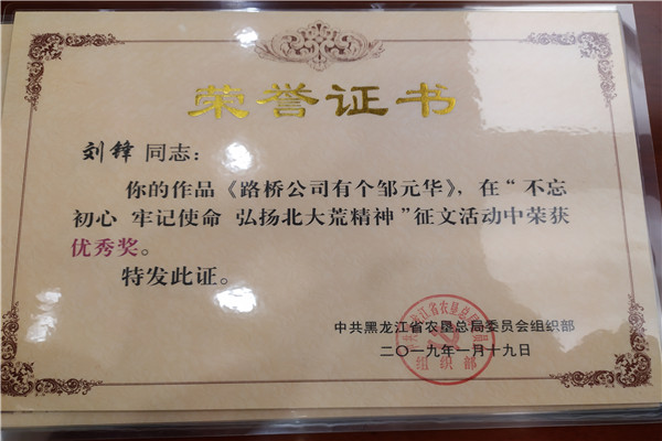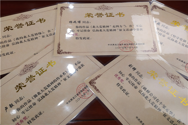 據了解,這個單位黨委高度重視基層黨組織建設工作,以“抓好黨建促發(fā)展”為目標,全面抓好干部培養(yǎng)和教育工作,其中,積極參加總局黨委組織部舉辦的“不忘初心、牢記使命、弘揚北大荒精神”征文活動。各基層黨組織、黨員干部積極參與征文活動,累計收到稿件25篇,經過把關、完善,最終推薦7篇稿件代表集團黨委參賽,7篇報道全部刊發(fā)《北大荒日報》重要版面,最終5篇稿件被評選為墾區(qū)征文活動“優(yōu)秀獎”,實現征文比賽墾區(qū)獎項“零”突破。主要作品為集團總部選送《北大荒精神“走四方”》;第一分公司選送《堅守黨旗下的誓言》;路橋公司選送《路橋公司有個鄒元華》《做北大荒精神的傳承者》《我的北大荒情緣》。