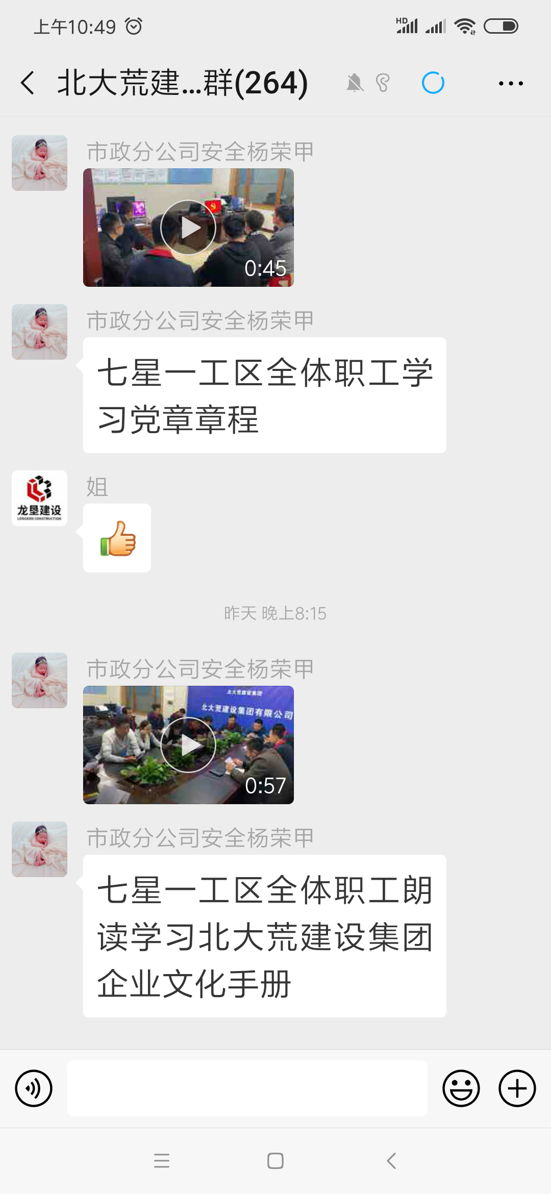 建三江是我國“最早迎接太陽的墾區(qū)”,位于祖國北部邊陲的三江平原腹地,有“東方第一稻”和“中國綠色米都”之譽(yù)。今年,北大荒建設(shè)集團(tuán)承建了我省青龍山灌區(qū)重要田間配套工程,其中,在農(nóng)墾建三江管理局七星農(nóng)場、前進(jìn)農(nóng)場,建設(shè)人干勁十足,各工區(qū)大項目現(xiàn)場人頭攢動,工程推進(jìn)如火如荼。在23日晚間,城市人剛剛進(jìn)入夜生活之時,這個單位的微信群中“點贊”手勢頻頻出現(xiàn),原來是在8:03,8:15分工作人員錄制上傳的學(xué)習(xí)視頻,得到了干部職工的好評,于是也引起了筆者的注意:“‘見縫插針’抓學(xué)習(xí),生產(chǎn)‘充電’兩不誤”。