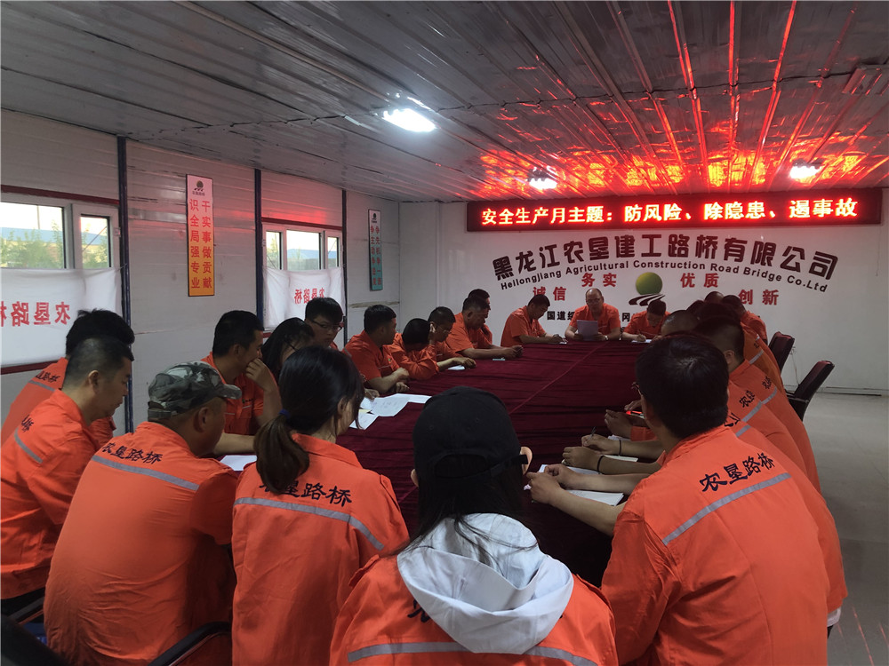 6月3日,為扎實(shí)貫徹執(zhí)行好公司關(guān)于《黑龍江農(nóng)墾建工路橋有限公司2019年“安全生產(chǎn)月”和“安全生產(chǎn)公司行”活動方案》。市政工程處組織全體職工在項(xiàng)目部會議室召開以“防風(fēng)險、除隱患、遏事故”為主題的安全生產(chǎn)月動員大會。