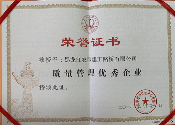 路橋公司首次榮獲“質(zhì)量管理優(yōu)秀企業(yè)”獎