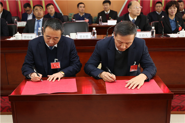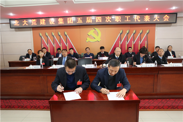 會(huì)上集團(tuán)黨委書(shū)記董事長(zhǎng)翟永勝分別與工會(huì)負(fù)責(zé)人王鏑簽訂了《北大荒建設(shè)集團(tuán)2020年職工工資專(zhuān)項(xiàng)集體合同》、與路橋公司總經(jīng)理于鳳河簽訂了《北大荒建設(shè)集團(tuán)經(jīng)營(yíng)合同書(shū)》、與第四分公司經(jīng)理包靜偉簽訂了《北大荒建設(shè)集團(tuán)安全、消防、環(huán)保工作責(zé)任狀》、與第二分公司經(jīng)理夏天簽訂了《北大荒建設(shè)集團(tuán)2020年信訪工作目標(biāo)管理責(zé)任狀》。