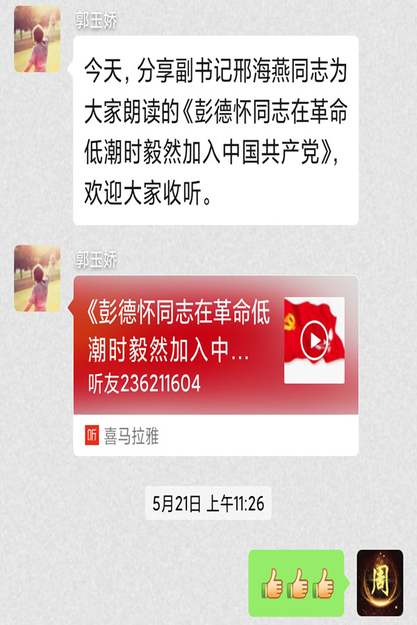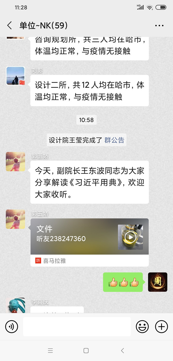 活動(dòng)得到了設(shè)計(jì)院領(lǐng)導(dǎo)的高度重視,率先發(fā)揮以上率下作用,大力支持,積極參與,先后為大家分享了《焦裕祿的入黨故事》《華羅庚70入黨終不悔》《彭德懷同志在革命低潮時(shí)毅然加入中國(guó)共產(chǎn)黨》、《我們的時(shí)代、我們的奮斗》、解讀《習(xí)近平用典——士不可以不弘毅,任重而道遠(yuǎn)》等文章,200余人通過(guò)音頻開(kāi)展線上政治理論學(xué)習(xí)。