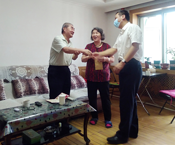 在有著45年黨齡的老黨員延庚龍和其47年黨齡的愛人金順吉的家中,翟永勝詳細詢問了老人和家人近期的生活、身體等方面的狀況,鼓勵他們要以健康、樂觀的心態(tài)面對今后的生活,勉勵老黨員要不忘初心,多關心集團的發(fā)展。在有著50年黨齡的老黨員張冬閣的家中,翟永勝詳細詢問了老人生活中存在的實際困難,鼓勵他們要堅定信心,戰(zhàn)勝困難。慰問現(xiàn)場,老黨員幸福拿出了集團黨委寄來的政治生日賀卡,激動地說,感謝黨組織的關懷,一定以優(yōu)秀共產(chǎn)黨員的標準要求自己,關心企業(yè)發(fā)展,為黨的事業(yè)發(fā)揮余熱。