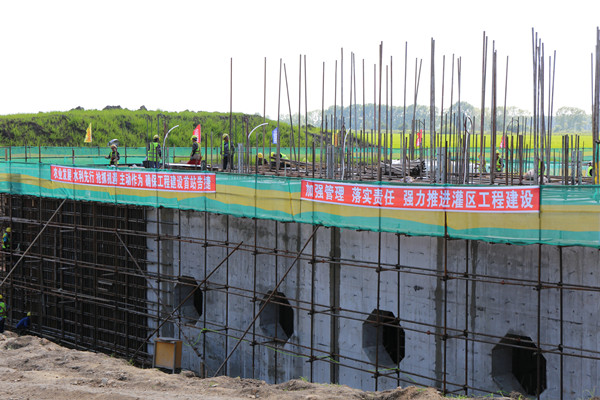 建設過程中,水利分公司始終樹立質量第一的觀念,對重點建筑物提水站以及骨干工程所有建筑物混凝土強度和外觀質量特別關注,混凝土澆筑前嚴查鋼筋綁扎,保護層厚度,模板強度、平整度、模板接茬等,對曲面混凝土不惜投入成本,采用定型鋼模板,打造出的清水混凝土外觀表面平整,曲面光滑,接茬平順,受到設計、監(jiān)理、業(yè)主以及上級主管單位的表揚。水利分公司施工的渠道軸線、渠底線、上口線順直,堤頂、邊坡、渠底表面平整,嚴格按著規(guī)范施工,精雕細琢,充分體現(xiàn)了水利人的工匠精神。