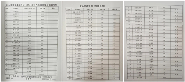 病毒無情,人間有愛。愛心捐助活動啟動以后,咨詢捐款的電話不斷。此次捐款采用了現(xiàn)場和網(wǎng)上捐助兩種方式進行。各子(分)公司紛紛參與進來,泰盛公司、水利分公司率先組織了現(xiàn)場捐款,各單位也分別根據(jù)員工多在施工工地實際,采用網(wǎng)上捐款的方式進行。第四分公司通知剛一發(fā)出,網(wǎng)上捐款就畫出來一條紅色的長龍,數(shù)字逐步在累加.....路橋公司、龍墾公司,你追我趕,涓涓細流匯成愛的大海。