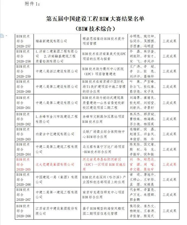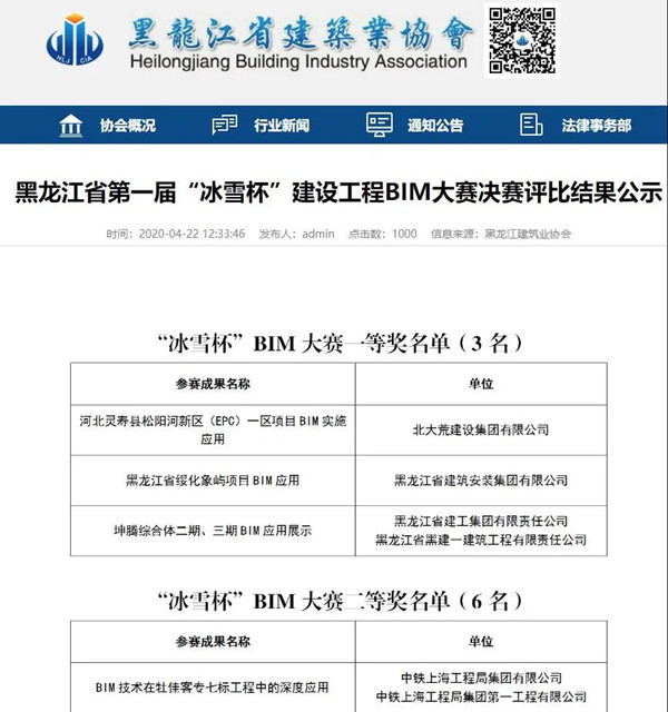 北大荒建設(shè)集團喜獲第五屆中國建設(shè)工程BIM大賽三等獎