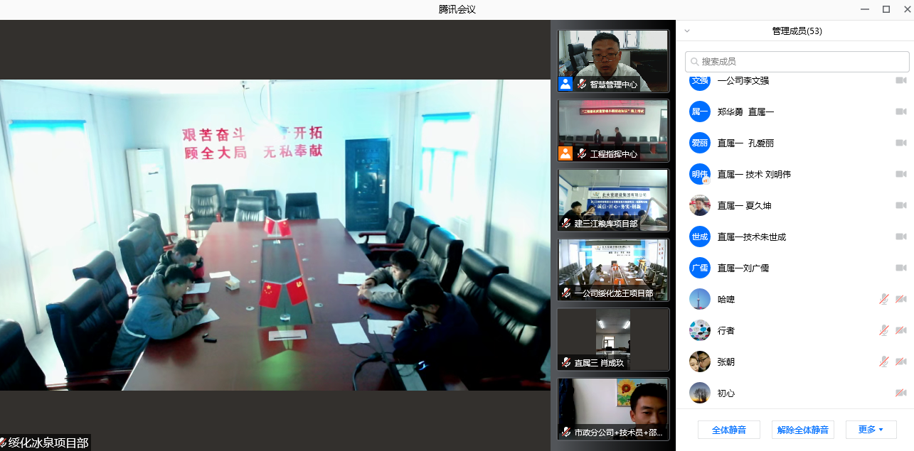 公司副總經(jīng)理任宇峰,工程管理部副部長馬麗麗通過騰訊會議的方式視頻監(jiān)考各考場和考生。