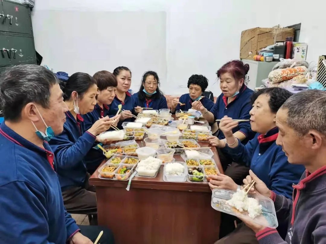 圖為:集團(tuán)辦公樓項(xiàng)目保潔人員吃工作便餐