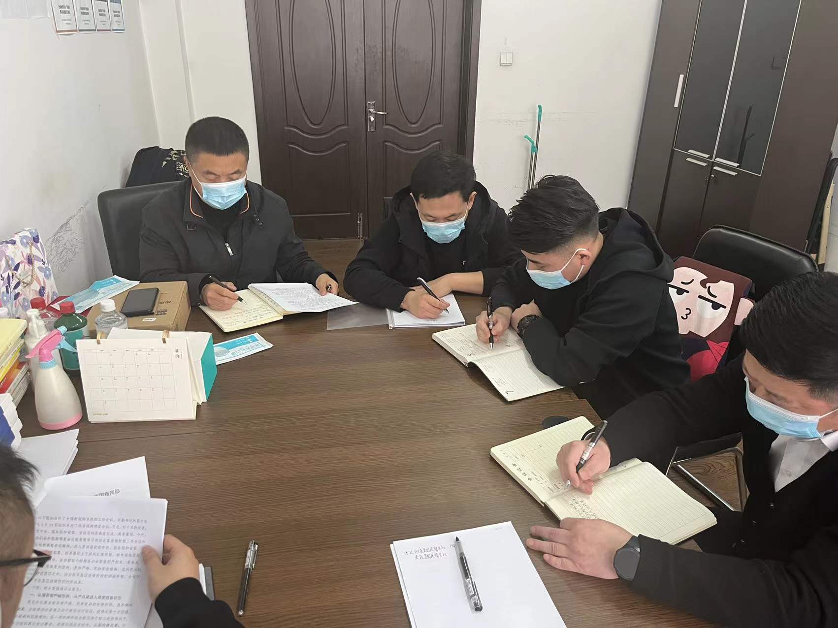 會(huì)議要求,一是公司所有人員、項(xiàng)目所有管理人員及施工人員(包含總包單位、物業(yè)公司、代理公司、勞務(wù)隊(duì)伍)進(jìn)行全員核酸檢測。二是全體員工上班嚴(yán)格執(zhí)行全員測溫、掃行程碼,并記錄在冊。三是嚴(yán)格管理施工現(xiàn)場進(jìn)出,并設(shè)專人值班管理。四是定期對(duì)辦公區(qū)域進(jìn)行消毒,及時(shí)采購并存儲(chǔ)足量防疫物資。五是項(xiàng)目施工現(xiàn)場新入場外來人員,必須到項(xiàng)目工程管理部進(jìn)行報(bào)備,并登記在冊。六是營銷中心嚴(yán)格落實(shí)來訪客戶登記、掃碼測溫、備案等工作。七是建立疫情防控應(yīng)急預(yù)案小組,責(zé)任落實(shí)到人。