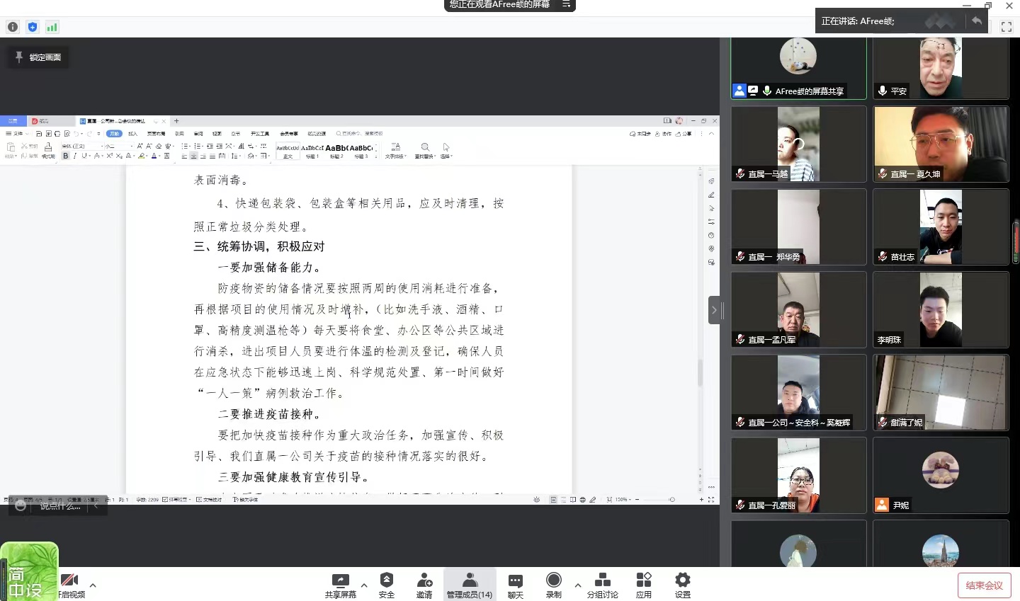 3月15日下午,直屬一公司通過騰訊會(huì)議的方式召開疫情防控會(huì)議。