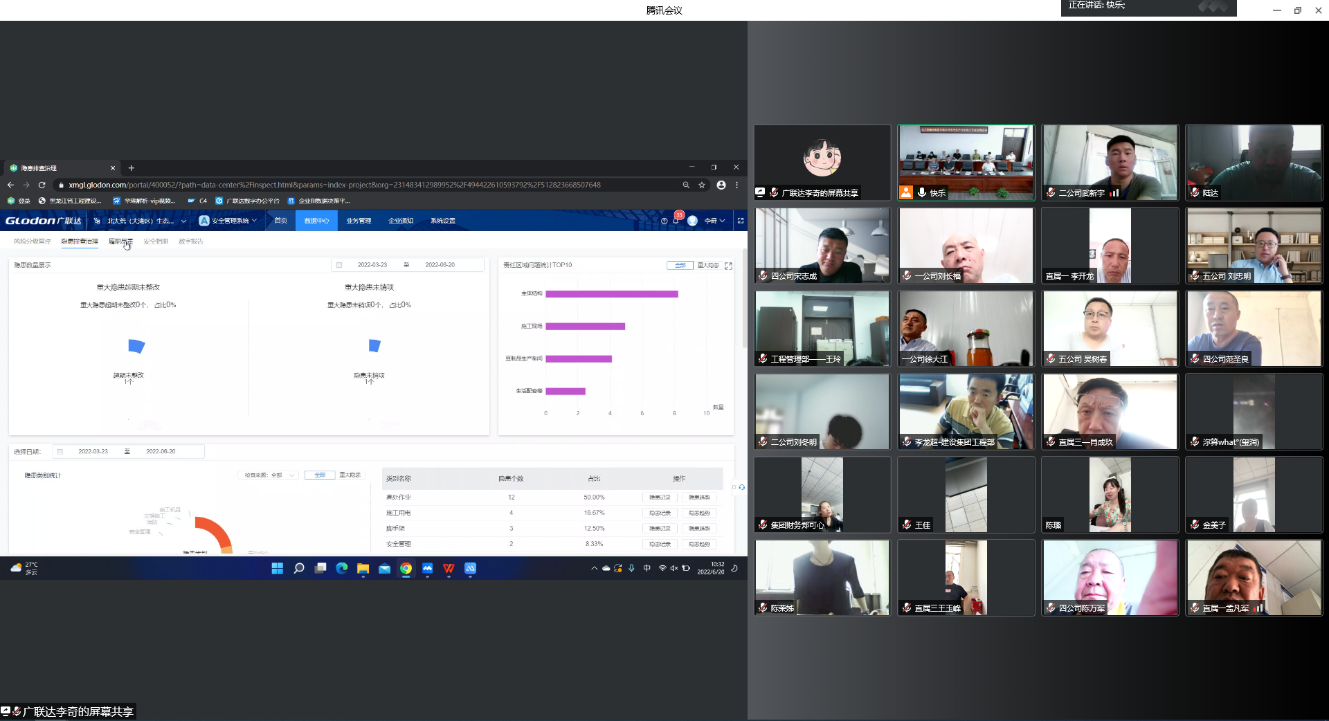 為進(jìn)一步完善BIM管理平臺建設(shè),加快推進(jìn)BIM與智慧工地技術(shù),提高管理人員及項目實施人員的平臺實操能力,此次培訓(xùn)特聘請了廣聯(lián)達(dá)講師圍繞企業(yè)級BIM+智慧工地管理平臺和項目級BIM5D管理平臺實際操作,從手機端、網(wǎng)頁端與PC端三個層面的多個專業(yè)模塊進(jìn)行詳細(xì)講解,并與項目BIM人員進(jìn)行了連線,進(jìn)行了遠(yuǎn)程答疑。