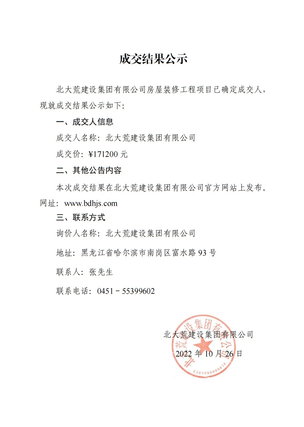 成交結(jié)果公示