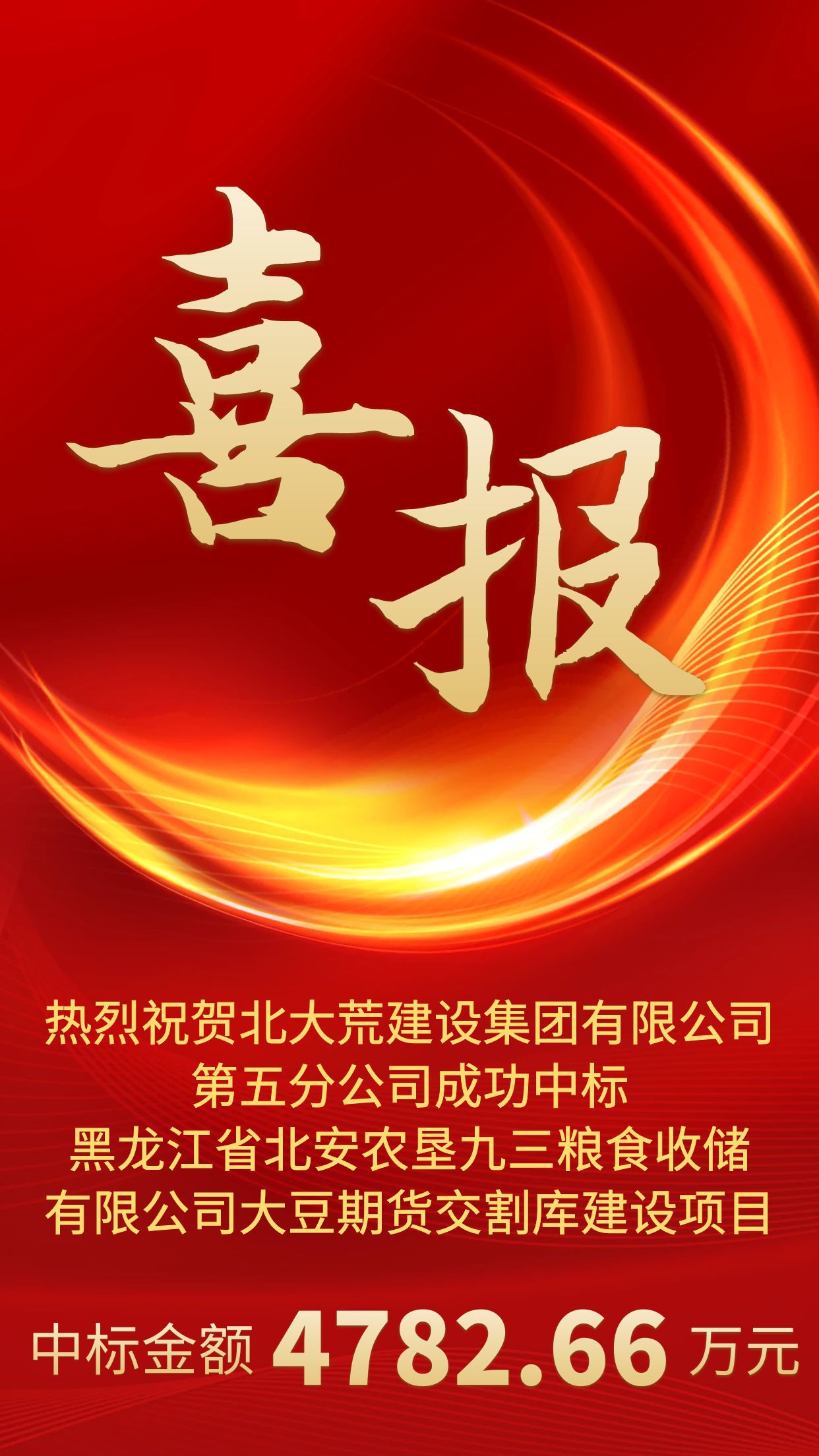 喜報(bào)!第五分公司成功中標(biāo)黑龍江省北安農(nóng)墾九三糧食收儲(chǔ)有限公司大豆期貨交割庫建設(shè)項(xiàng)目