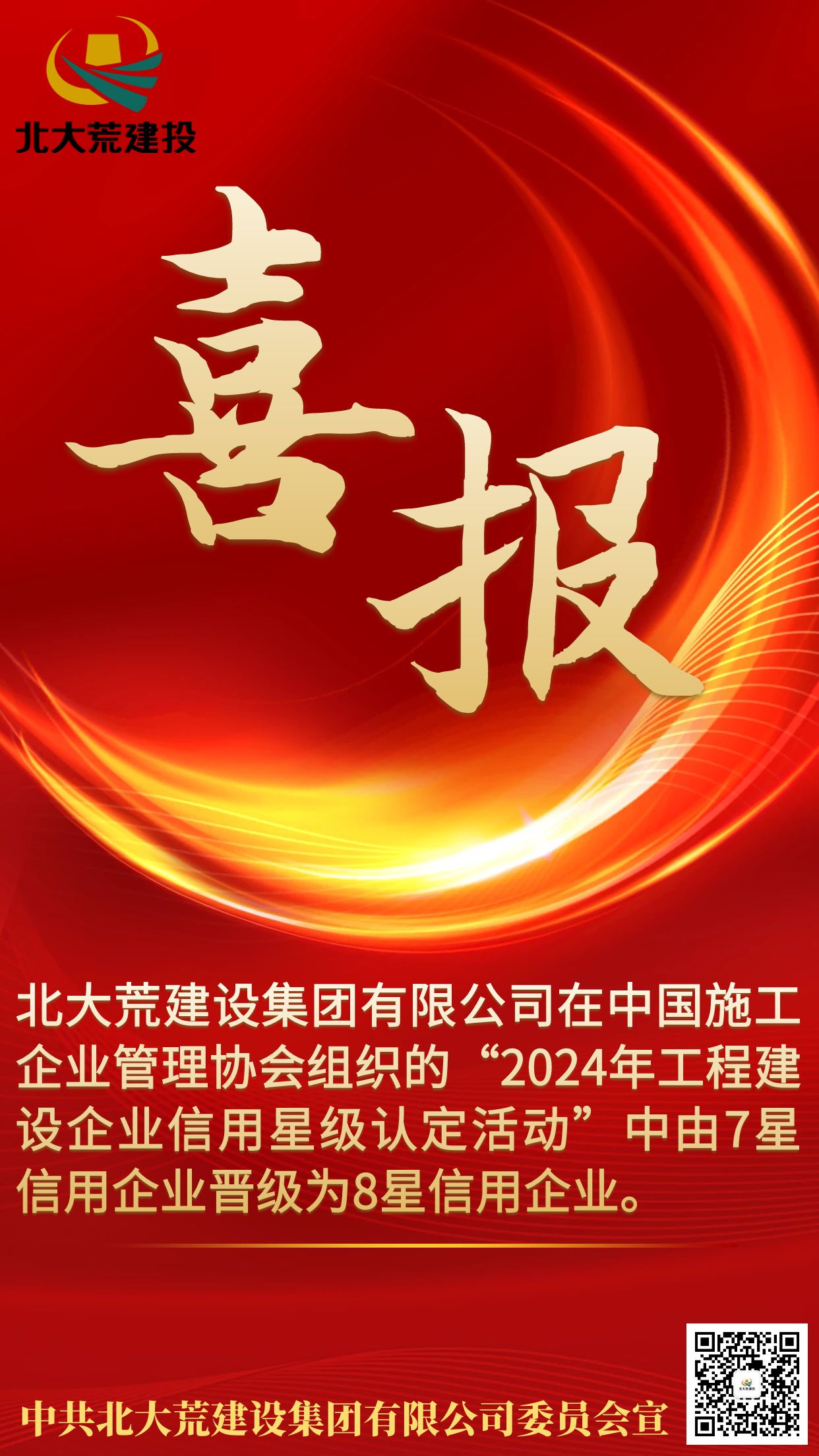 【喜報(bào)】北大荒建設(shè)集團(tuán)有限公司晉級(jí)工程建設(shè)8星信用企業(yè)